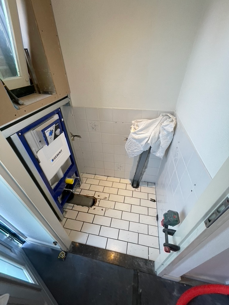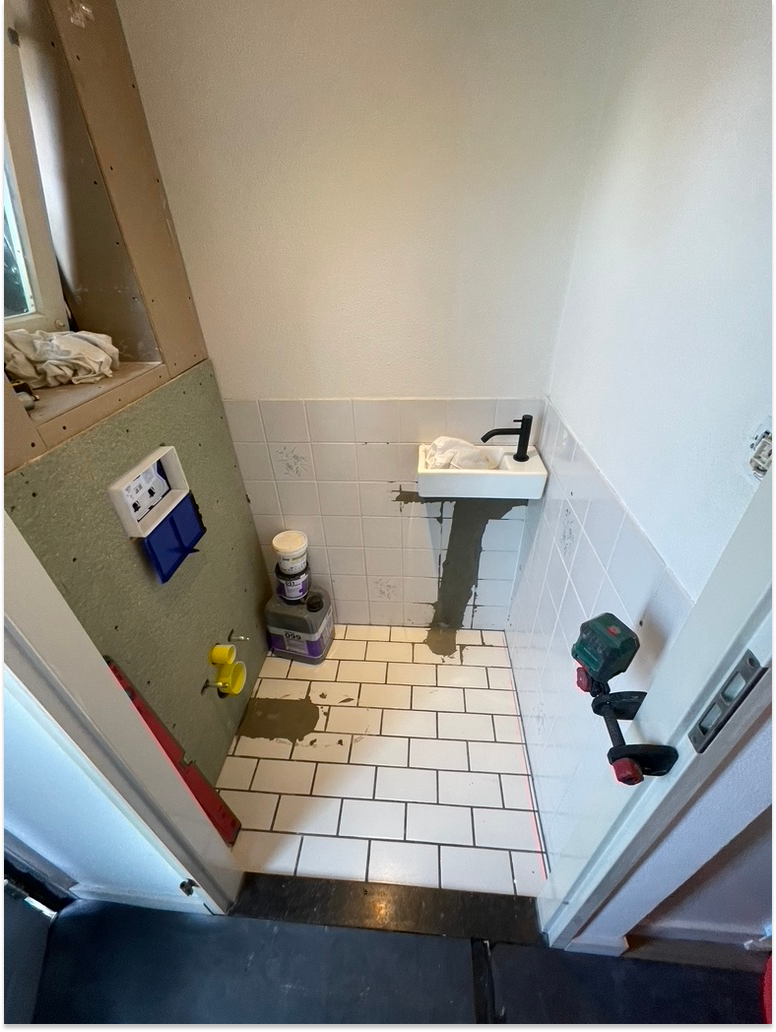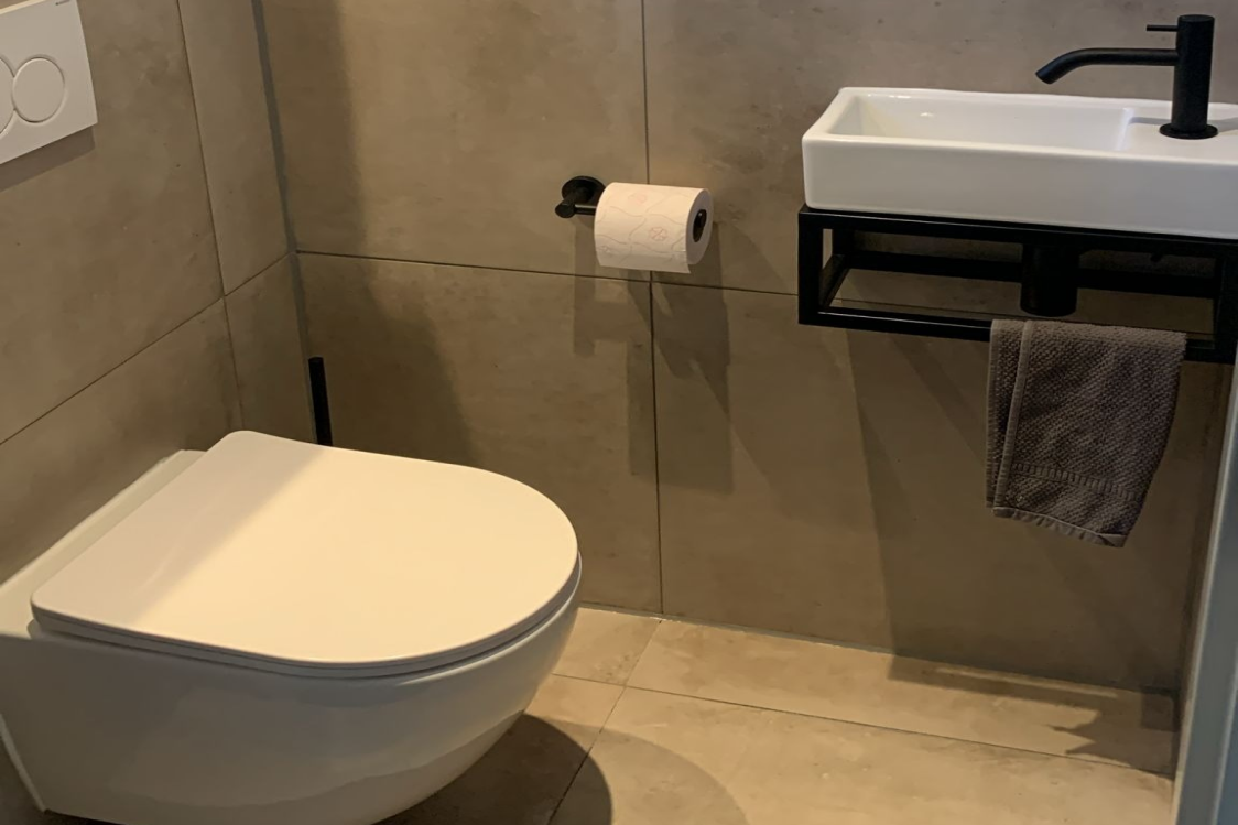 - Tegels en kitwerk: Het toilet werd betegeld met duurzame, moderne tegels, en professioneel kitwerk zorgde voor een waterdichte en verzorgde afwerking.
